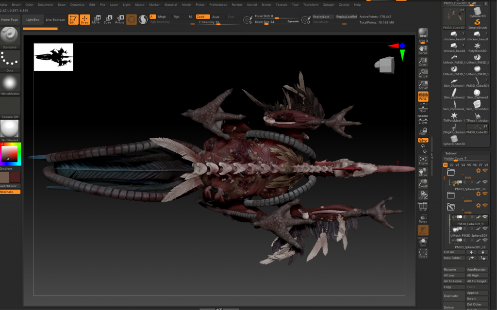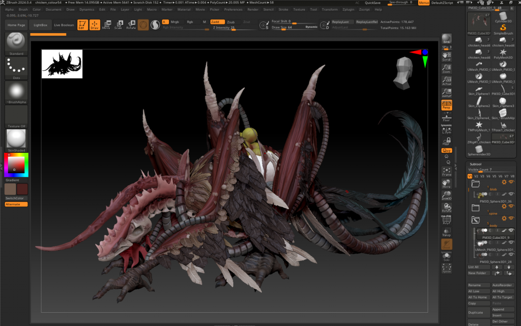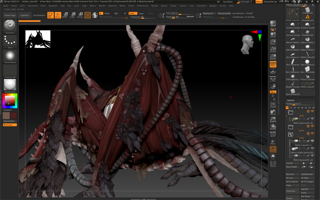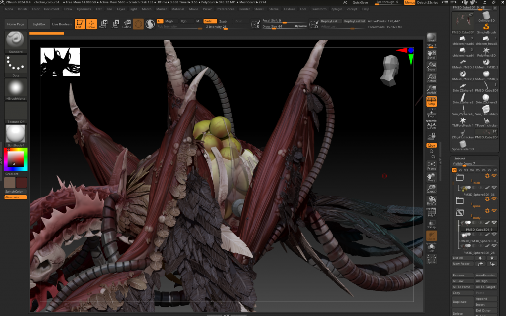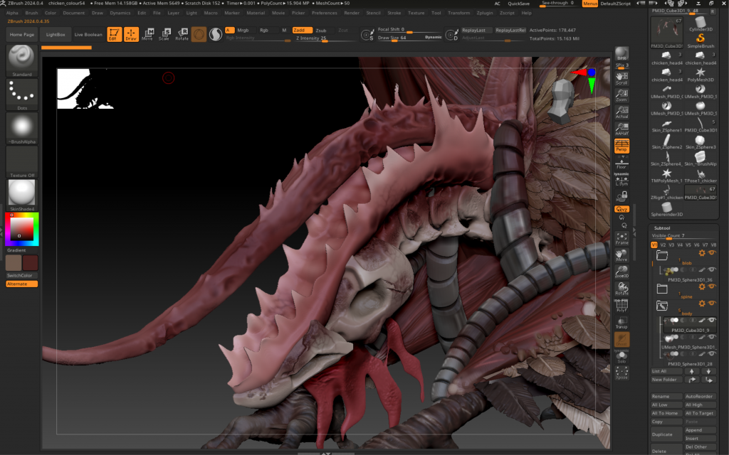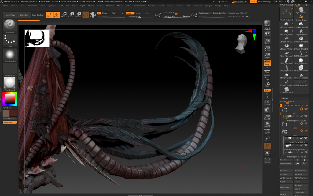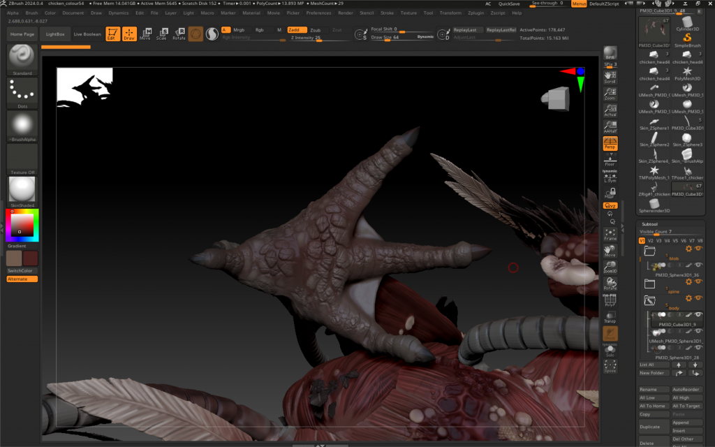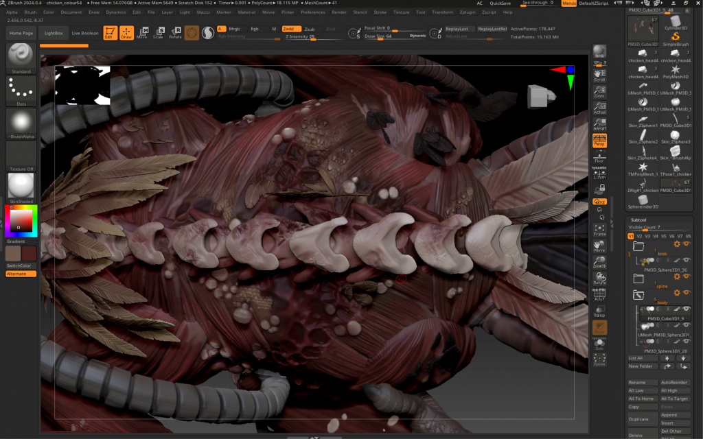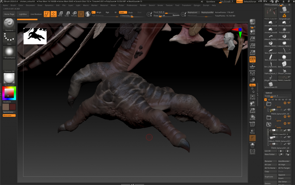 I continued to refine the colours on the chicken model and added a few more adjustments. I noticed that the burn blisters were scattered too randomly, making it look overly distracting. Hence, I removed some bumps by re-sculpting the model to balance the amount of blisters.